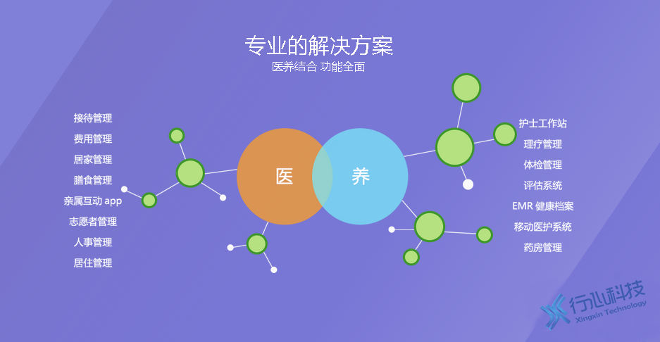 行心医养结合管理系统是国内专业的医养结合的养老信息化系统,适用于各类养老机构,如社区养老机构、养老院、老年公寓、养老地产行业、医疗养老机构、居家服务中心。