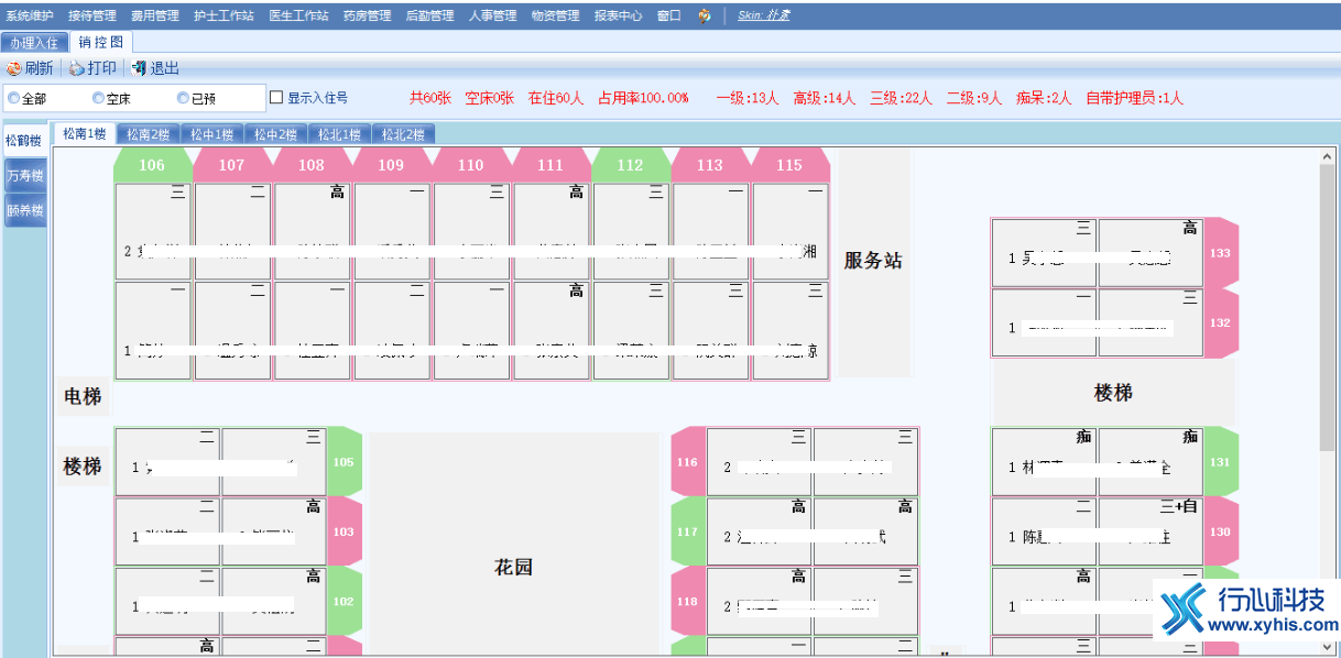 养老院信息系统管理模块,包括接待管理、老人档案、餐饮、洗衣等老人生活管理等模块。除此之外,系统还加入OA办公系统,远程医疗,微信回访、推送分享、智能考勤等现代化系统。行心科技为养老机构设计的信息管理系统,提供全面的技术支持和客户化定制,完全符合养老机构信息管理需求,并保证了系统稳定性、安全性、先进性、维护的简易性。