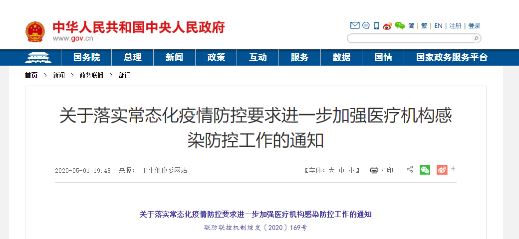 当前,境外疫情仍在持续增长,导致我国外防输入压力较大,国内防止疫情反弹的复杂性也在增加。为贯彻落实常态化疫情防控工作中“外防输入、内防反弹”的工作要求,进一步强化医疗机构感染防控的各项措施,最大限度降低院内感染发生风险,巩固来之不易的防控成果,国务院应对新冠肺炎联防联控机制综合组印发《关于落实常态化疫情防控要求进一步加强医疗机构感染防控工作的通知》(以下简称《通知》)