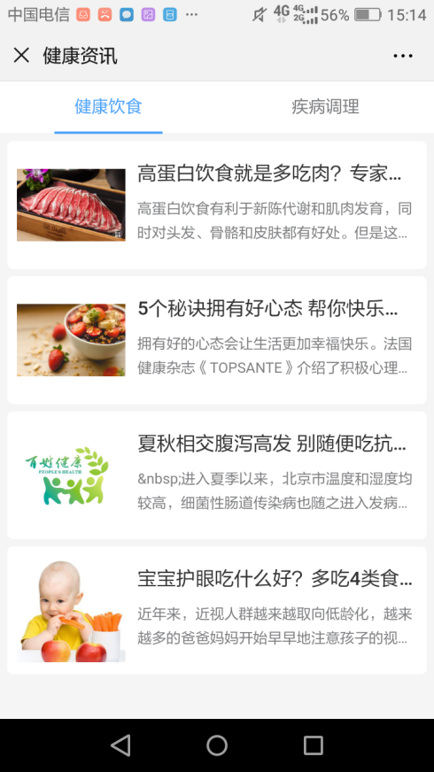 患者可以通过平台浏览最新健康饮食、疾病调理知识等。