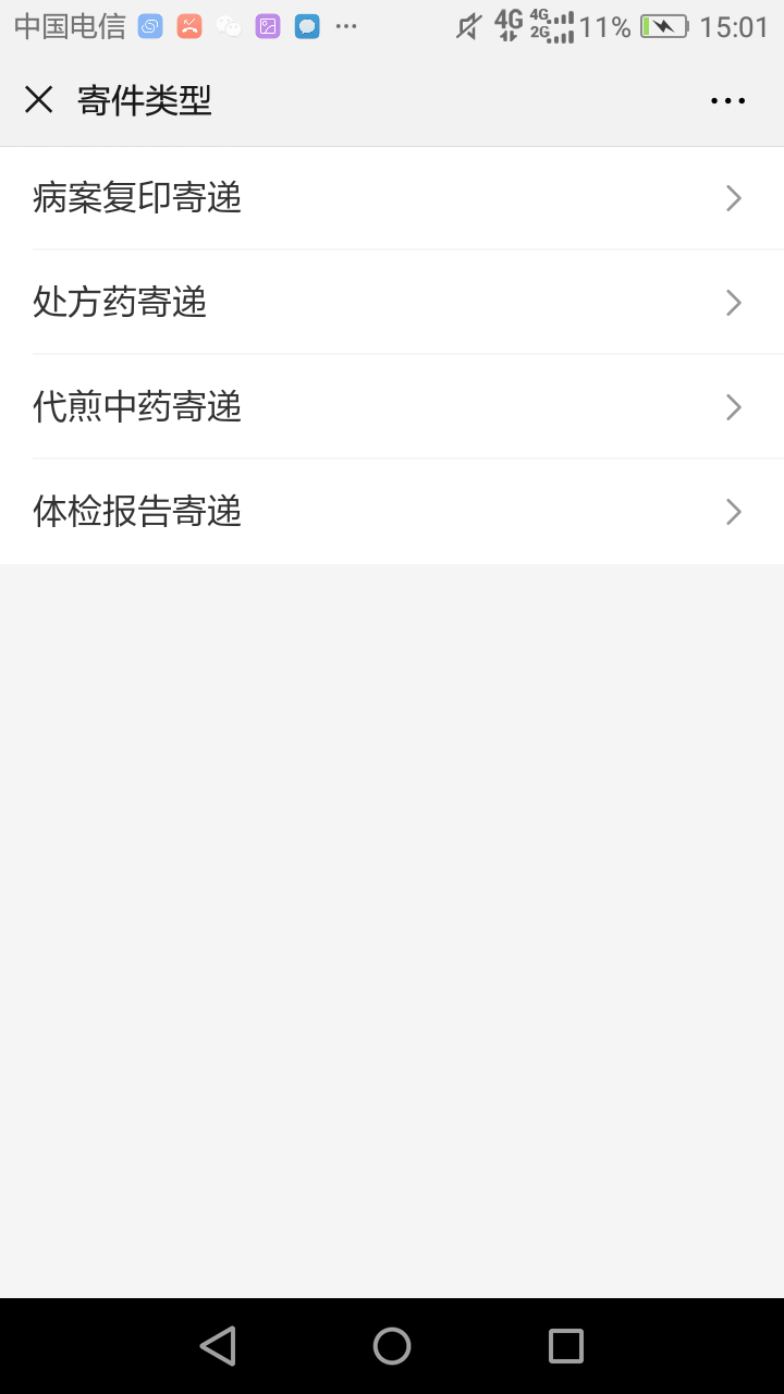 支持快递到家服务,患者下单时填写寄递的地址,直接上门送货,包括病案复印寄递、处方药寄递、代煎中药寄递、体检报告寄递。